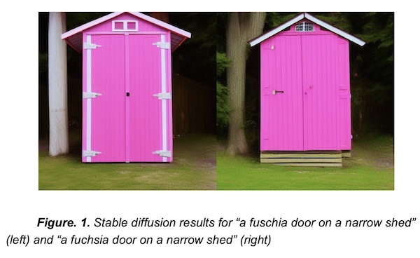 "This paper considers the following questions: how effectively are the colored objects generated? how do the colors generated by stable diffusion compare to human color naming? How might color terms be useful in visualizing properties and features of generative algorithms?"