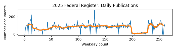 From the 2025 raw publication data, we can tally the number of publications per day (median of 82).